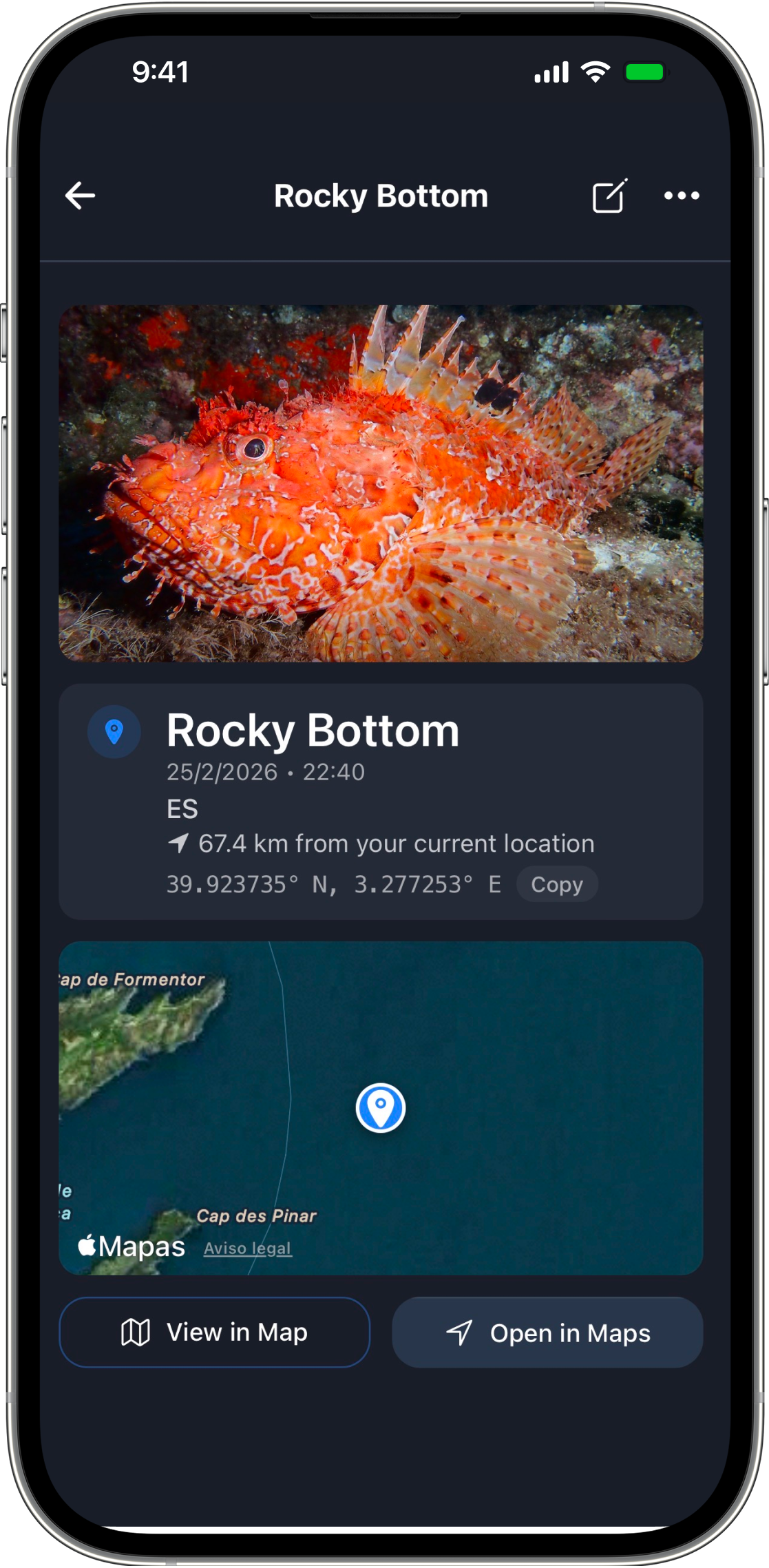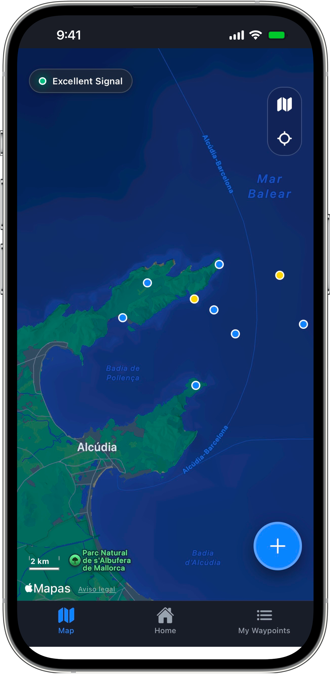 La app para guardar waypoints rápido, sin menús, sin ruido. Diseñada para cuando el tiempo y la precisión importan.